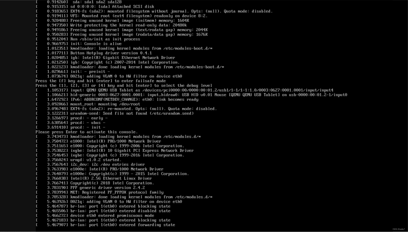 出现这个界面,基本就是启动完成了,按一下回车,进入shell