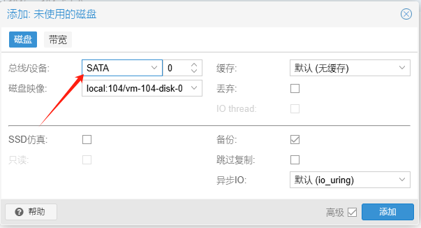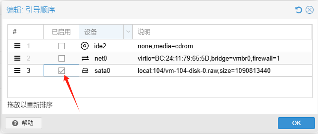 qm set 104 --sata1 local:104/vm-104-disk-0.qcow2调整引导顺序