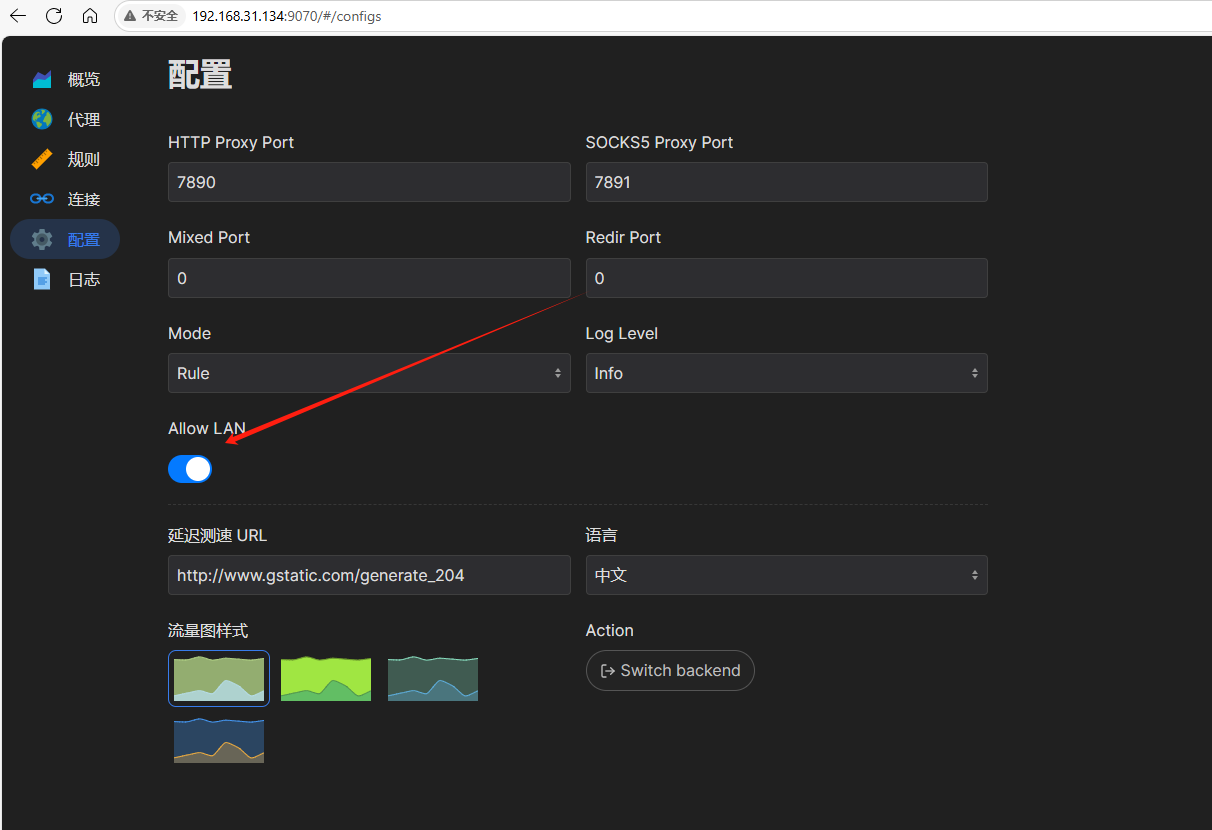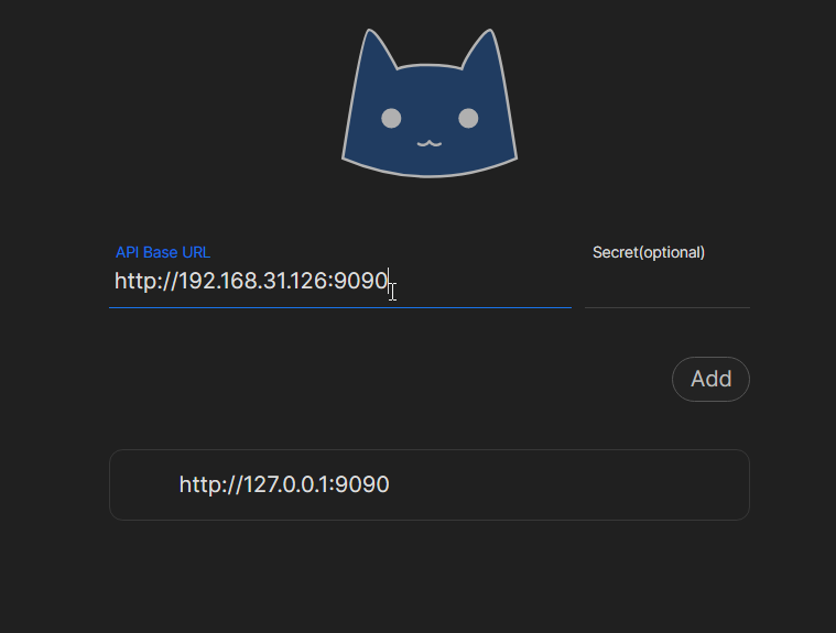 访问:http://<你的nasip>:9070,例如我的就是:http://192.168.31.126:9070/ 添加clash服务的地址