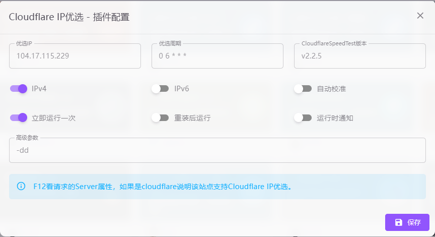 这里填写的优选IP要与前面 自定义hosts插件 内配置的IP保持一致,按照下图填写,周期可以自定义,软件版本可以不用管,点击保存